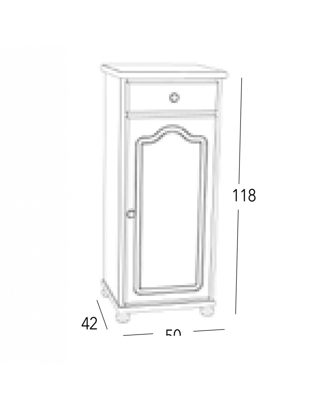 El zapatero 1P Provenza está disponible con una puerta y un cajón de guía de madera, y presenta las siguientes medidas totales en cm.: