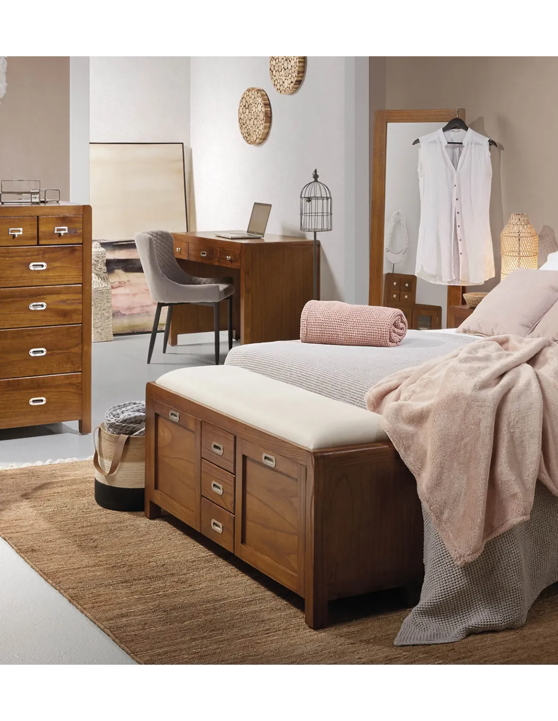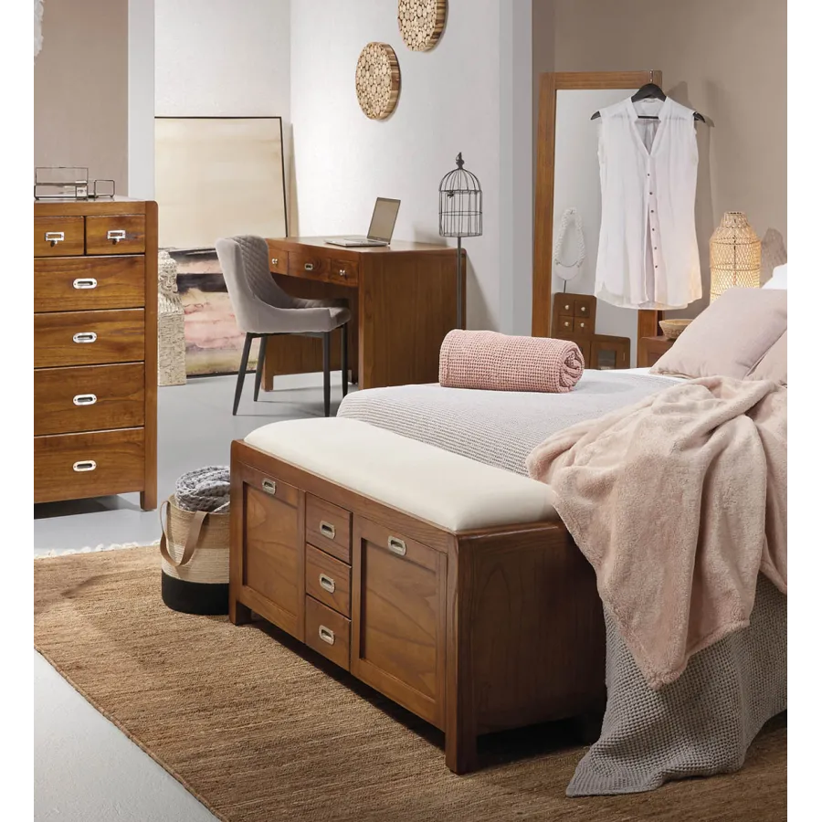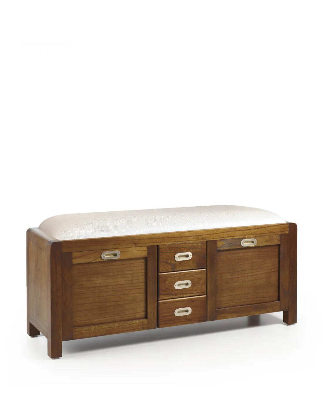 Zapatero fabricado en madera maciza de Mindi con inconfundible diseño colonial con cajones y puertas