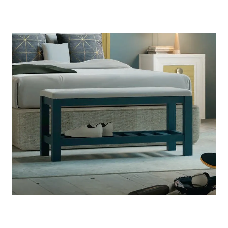 Banqueta descalzadora fabricada en madera con asiento pretapizado