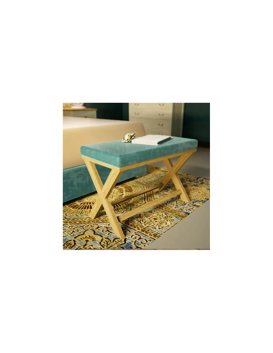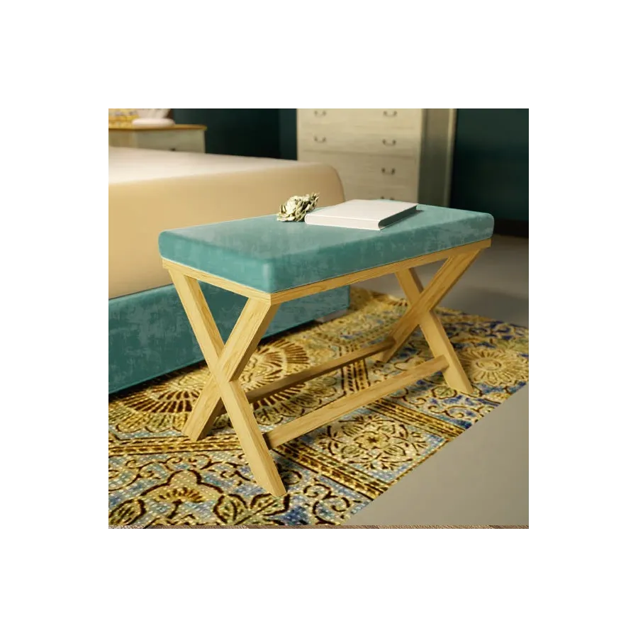 Banqueta descalzadora cruceta fabricada en madera con asiento pretapizado