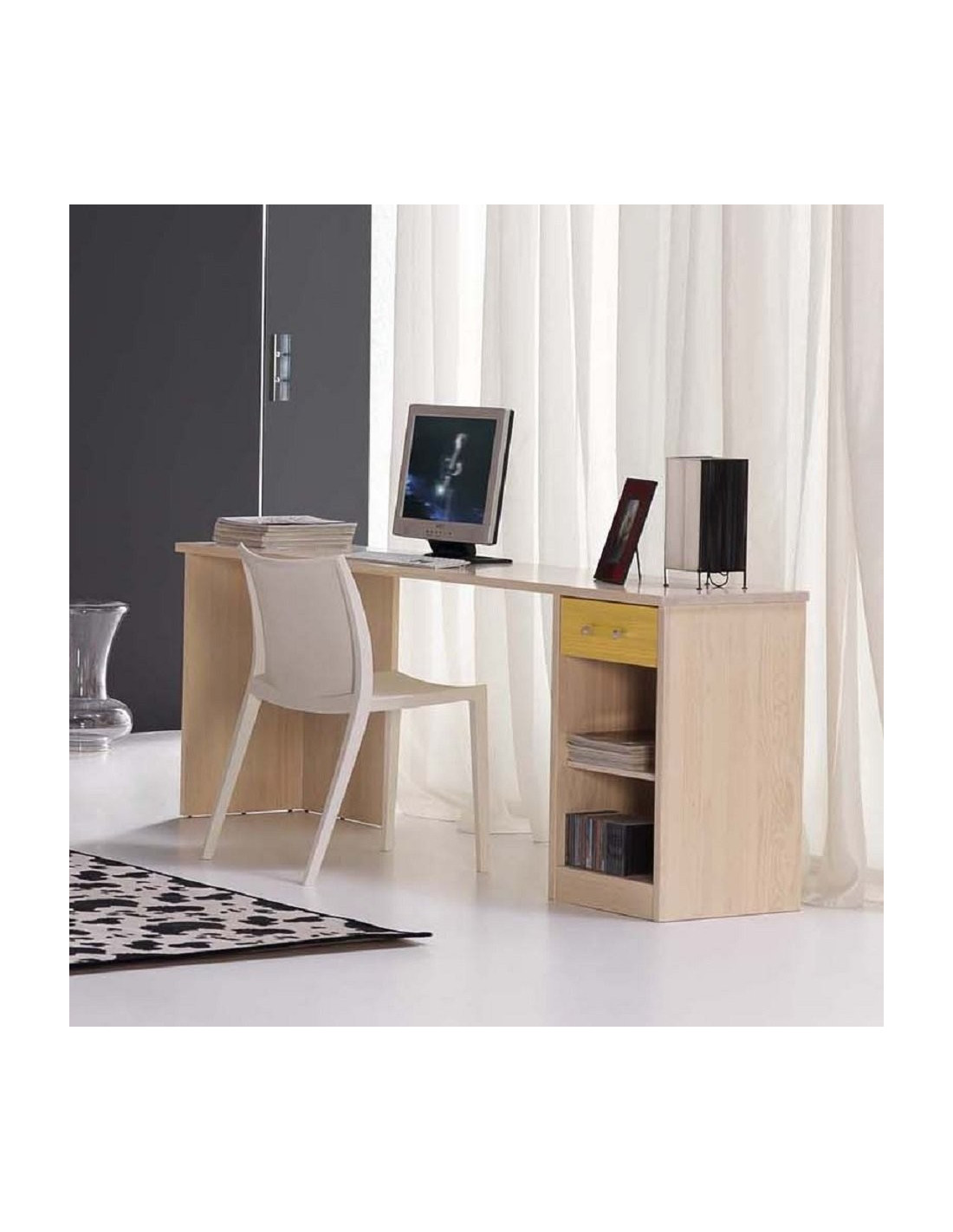 Este escritorio con cajonera y pata de madera está disponible para combinar colores base, para la estructura, la pata y la tapa, y colores de combinación para el cajón. Esta mesa de estudio de madera maciza tiene estas medidas en alto x largo x fondo: