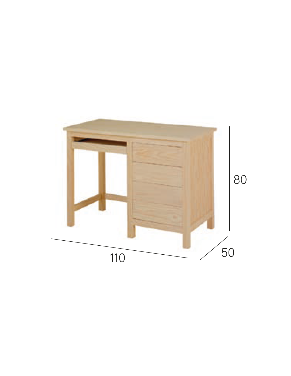 Este escritorio rústico en madera con 4 cajones lleva incluida la bandeja extraíble para soporte de teclado. Tiene las medidas que detallamos a continuación en largo x alto x fondo (cm.):